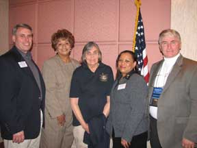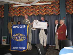 | The Hampton Roads Region is made up of four divisions and is the largest region in CDK. They prove the adage that "you can do a lot more together than one individual (or even one division) can do alone". The Power of Kiwanis. In this two picture tribute, (left to right) LGs Danny Simmons (Div. 16), Judy Pantelides (Div. 13), Scott Zimmerman (Div. 21), Linda Smith (Div. 21) and H-R Region District Trustee Floyd Brown received the thanks of Kings Daughters Hospital for Kiwanians annual support. | ![]() |