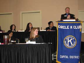 | Devon Chenette, CKI DCON Chair and Mary Baldwin College CKI President, addresses the combined luncheon of CKI and CDK Kiwanians. This was a nice idea. | ![]() |