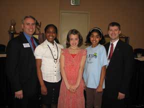 | The Mason Dixon Mid Winter was held in conjunction with the 49th Capital District CKI Convention where each had their respective business meetings and workshops, but the 'big tent' meetings of breakfast, luncheon and the formal dinner were held together in the main ballroom. At the luncheon, Kiwanis Governor Tom Ganse addresses the combined crowd with CDK's congratulations on Capital District CKI's 49th Anniversary. To Tom's left, bottom row are Avanti Kollaram, Tidewatre-64 LG from Old Dominion University and Rachael Newcomb, Ridgeline LG, University of Mary Washington. Top row, Heather Waite, 2008-2009 CKI District Governor, Virginia Tech and Duc Nguyen, Valley LG, also from Virginia Tech. | ![]() |