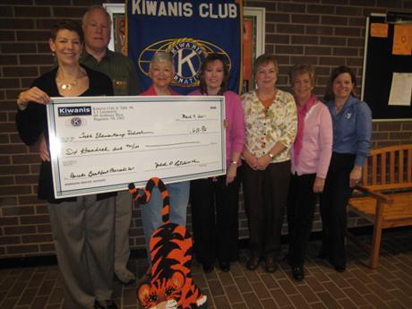 Tabb Kiwanis Club donated $600 to Tabb Elementary School on March 10 to purchase school items which are not funded by their budget. This is the 4th year that TKC donated funds to help enhance education for children at Tabb Elementary School. Attached picture is taken at the check preentation on March 10. Left to right, Randy Pine, Dave Pine ( Club president), Judy Letchworth (Club treasurer), Cheryl Parr ( Tabb emenentary School Principle), Marie Dasovich, Vivian Kruger, Kim Wood.