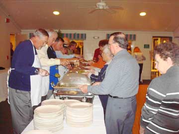 Wunderbar Kiwanis German Dinner Raises Scholarship Funds The Ocean Pines Country Club was all a bustle with the Kiwanis Annual Autumn German Dinner on Sunday November 2nd. While the dinner is labor intensive, with three days of food preparation by the Kiwanis Club members prior to the dinner, the end result is "Wunderbar". Pictured are Kiwanis members serving guests the traditional German foods. Patrons enjoy a wonderful meal and funds are raised to allow the Kiwanis Club of Greater Ocean Pines - Ocean City to continue to award scholarships annually to deserving local high school senior students to further their educations. Something for everybody. Kiwanis says "Danke" (Thank You). |