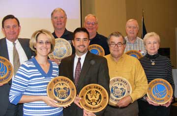 On November 11, Veterans Day, the Veterans of The Kiwanis club of Toano were honored with individual military service plaques, made by John Walrath. John designed a plaque specifically for each person with name, branch of service, insignia, and years served. John and Terry Sweaney presented the plaques. Thank you, John, for your generous gift, and thank you to our veterans for your dedication and service to our country. Pictured are: Row 1, Left to right: Jaime Jeffers, Navy, 6 years; Kevin Onisuk, Army, 4 years; Mayes Mathews, Navy, 20 years; Deane Gaston, accepting for David Gaston, Air Force, 4 years. Row 2, Left to right: Bill Forloine, Air Force, 4 years; Bert Geddy, Navy, 6 years; Bill Craig, Air Force, 11 years; Ralph Frye, Air Force, 22 years.