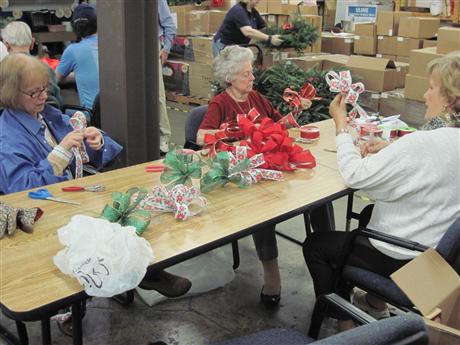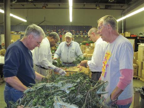 Pictured are the Kiwanians constructing the wreaths...