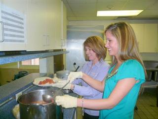 (Above) Kim Triplett (left) and Ryan Hudson of the Kiwanis Club of Old Town, Winchester,(Va) serve lunch at the Salvation Army Shelter. The Club members serve lunch each Tuesday and Friday at noon as a community service project.
