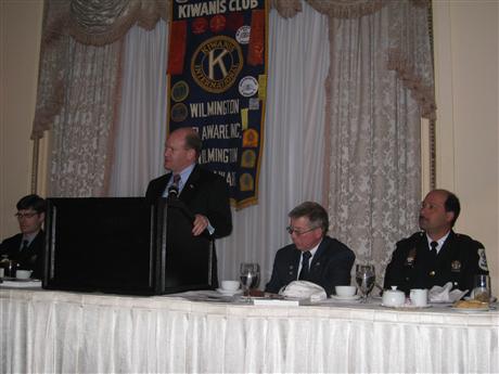 Wilmington DE club's Annual Police / Fire & EMS Persons of the Year Awards dinner was recently held at the Hotel DuPont. Recipients shown above. Below, speaking to the club, just in from DC, US Senator and Wilmington club member, US Sen Chris Coons.