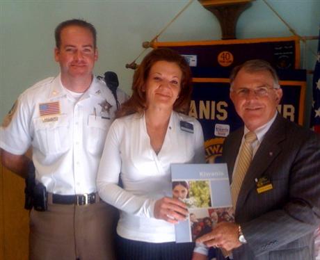 On Wednesday, Nov. 17 at their lunch meeting, the Colonial Heights Kiwanis inducted their newest member, Shelby Frazier, center. Members Sheriff Todd Wilson, left and Leonard McAdams, right welcome Shelby to the club.