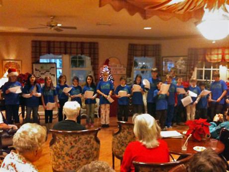Above, newly chartered Pinecrest K-Kids participating at one of their first service projects, holiday sing-along and craft projects at Sunrise Senior Living in Falls Church, VA.