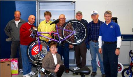 Members of the Grafton Kiwanis Club went to the aid of the Salvation Army December 6, helping assemble and prepare bicycles to be distributed during the holidays. Eight club members, with help from two members of the Peninsula Bicycling Association, inflated tires, tweaked brakes and adjusted saddles on 37 bikes for the Salvation Army's Angel Tree program. Kiwanis workers included: Mary & Gary Boxer, Rob Elsass, Kathy Everhart, Bill Monroe Charlie Park, Lee Roberts and Tom Tragle. PBA members Ron Hafer and Lou DeGrace helped. (Monroe, Park and the Boxers are also PBA members)