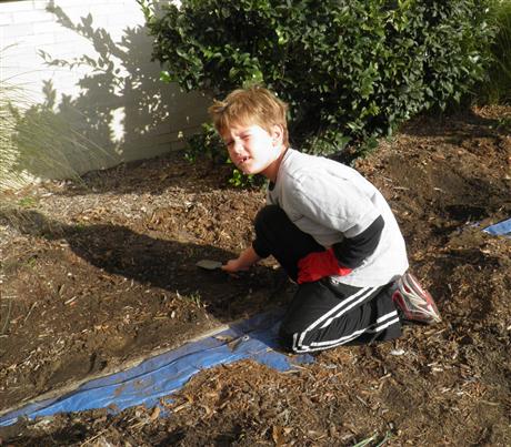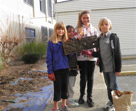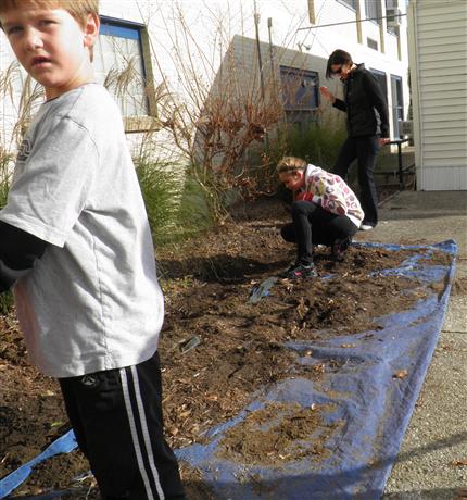At the beginning of the school year, the Rehoboth ES Principal Mrs. Mumford gave the two Coastal DE Kiwanis Advisors a new project for the RES K-Kids. They could plant a garden at the bus stop so flowers would greet the students in Spring when they arrived each morning. The bulbs were ordered and after a long wait they finally arrived. Luckily, the December weather held out and one beautiful December Saturday afternoon the K-Kids planted Spring bulbs at a sunny spot where the bus drops off and picks up students. First, they raked the area clean, then laid out a tarp on the sidewalk for the mulch they would remove, then working in teams they dug holes according to size for the 50 Anemone Bulbs, 50 Grape Hyacinth Bulbs, 25 large Daffodil Bulbs, and 50 purple and white Crocus. Part of the fun during the work was the discovery of a "buried treasure" - a large rectangle of concrete or metal with holes. After careful examination and no clear answer, they decided to show the maintenance staff the next school day. Continuing, the K-Kids then placed each bulb in a hole with one team member planting and the other covering with dirt. After they finished planting, they replaced the mulch and cleaned up the area, and enjoyed the tailgate party of cookies and lemonade their Kiwanis Advisor had ready for them when they finished for the day. Now, the K-Kids are on alert, as they wait until March or the first days of Spring, whichever comes first, to see the results of their work as the bulbs start to sprout leaves and flower. Stay tuned.