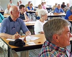 (Above) The entire program was video recorded for later training and other uses. Here, the camera focuses on three of the four division leaders who sat at a front table to comment on the topics being discussed and ask questions of the presenter.