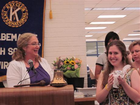 Outgoing President Melissa Leider received an engraved Jefferson Cup from Key Club Faculty Advisor Teresa Tyler in recognition of her outstanding leadership.