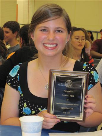 Also pictured is Incoming President Annie Lopez, showing off her award for outstanding leadership and service as a sophomore.