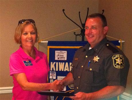 Millsboro Kiwanis Club Past President Mary Anderson (left) awards a certificate of appreciation to Sussex County Sheriff Jeff Christopher (right) for his informative presentation at the club's meeting on June 8th.