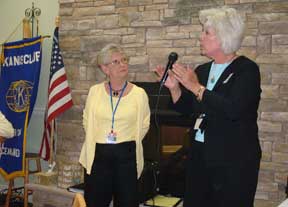 As is the tradition for the annual celebration of the club's chartering, the widows of several of past members of Kiwanis were in attendance.  Pictured left are seated in the front (L to R) are Edna Pilatu and Esther Gallagher.  Seated behind the table (L to R) are Anne Fowler, Sharon Armstrong, Betty McDermott, and Marge Rehkemp.  Stand (L to R) are Maureen Begley, Anita McLaughlin, and Gloria Liebling.  Affectionately now known as "Ladies of the Day" as the club's president, Corky Widerman dubbed them.  It was a good day for local Kiwanians to honor their beginning and remember the past!