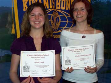 On May 5, 2009, The Kiwanis Club of Westminster recognized two Student of the Month Award recipients at their meeting at Wakefield Valley Golf Club. Both students attend Winters Mill High School. Olivia Cook, on the left, was chosen by the Family and Consumer Science Department. Upon graduation Olivia will be attending Carroll Community College in the nursing program. On the right is Catherine Fitzgerald who was recognized by the Math, Science and Technology Academy. In the fall she will be attending Salisbury University majoring in Science Research.