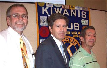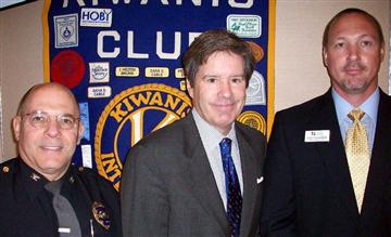 The Kiwanis Club of Frederick continued their "Kiwanis Community Youth Needs" program on May 11 with Frederick Chief of Police Col. Kim Dine and Scott Alexander, President/CEO, Frederick Youth Alliance speaking to the club. Chief Dine spoke about crime statistics and trends of violence and robbery in the city and the Departments outreach and prevention youth programs. Alexander spoke on the goals of the Alliance and especially the Club Explorer program in providing an after-school and summer enrichment program where youth can explore their strengths and build skills needed to make good choices. The Alliance also works with the local police through the Police Activities League in building better relationships between families and children and law enforcement. Pictured, left to right, are Col. Dine, Kiwanian Mike Hosford, and Scott Alexander.