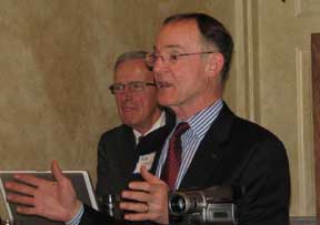 United States Navy pilot now Captain Mike Cronin (right) began his address and