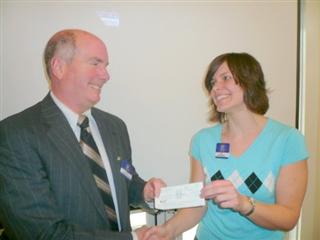 (Above) Kat Bronson (right), President elect of the Kiwanis Club of Old Town, Winchester, (VA) presents a check to Winchester City Police Chief Sanzenbacher as a donation to the Frederick County/Winchester Law Enforcement Foundation. The funds will be used to provide equipment for a center for youth activities.