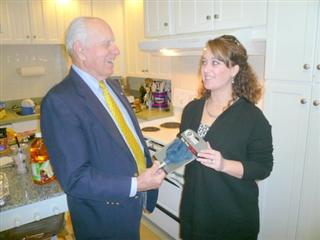 (Above) Doug Butler, Secretary of the Kiwanis Club of Old Town (Winchester,VA) presents a Special Seniors Jar Opener kitchen item to Godfrey Miller Home Assistant Director Marsha Himelright. The Club meets at the Home and contributes regularly with items to aid seniors who us the Center.