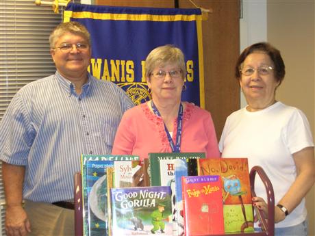 The Kiwanis Club of Suburban Frederick's ongoing Read Around the World program results in a steady stream of new children's books being donated to the C. Burr Artz Public Library. "Our club purchases children's books recommended by the library," says club president, Eric Gatrell. "We donate one book each week to the library in the name of our weekly club speaker. The speakers are very happy to sign the bookplate and have the book donated in their name," he continued. Recently, Gatrell and club member Mick Hickman delivered a batch of children's books to the library. Pictured left to right are Eric Gatrell, Mary Hauer (Material Coordinator for the C. Burr Artz Library, Mick Hickman.