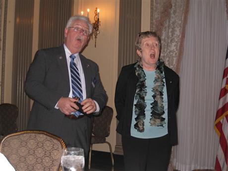 WILMINGTON KIWANIS MEETINGS ARE FUN! Frank Werner(Aktion Clubs & Membership) on harmonica and Pat Bartoshesky(Eliminate & Priority One) on tonsils perform our national anthem together impromptu when our piano player of 25 years got sick.