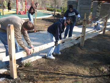 It was a beautiful day and all involved were able to contribute to get the projects done, whether it was digging holes, shoveling blue dust, controlling the wheel barrows, or pulling up stones. Many parents stopped to watch what we were doing and ask about Kiwanis. This was a great opportunity for exposure, while making a huge difference in the live of young children—disabled or not. With budgets cut across the board, the Fairfax County Park Authority was very appreciative of our club volunteering to help. The Club plans on continuing the split rail fencing project at Clemyjontri Park throughout the summer.