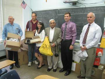 Pictured are (left to right) Warren Kane,Kiwanis Advisor; Rev. Glen Evans, a member of the Arlington Club and President of Art for Humanity; Diana Martin, President of the Key Club; Khalid Siraj, President of the Arlington Kiwanis; Dr. Joseph Vorbach, principal of O'Connell High School; and Bob Murray, Faculty Advisor of the Key Club.