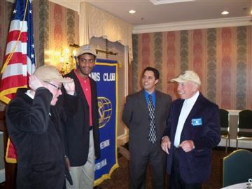 Avovet, CKI President "Ash" Elmelik and VP Ryan Pierpoint with Faculty Adviser Ken Balbuena when they received official baseball caps from Mount Vernon Kiwanis Club President Bruce Malkin after a dinner held April 21 at the Mount Vernon Country Club where the student leaders and their Adviser spoke about the new club to the MVKC  members.