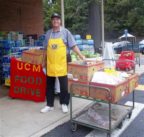 On Saturday, September 24, the Mount Vernon Kiwanis Club (MVKC) held a Food Drive from 9-5 at the Hollin Hall Safeway on Fort Hunt Road. Generous shoppers donated over 1500 pounds of much needed food and about $300 in donations, which MVKC delivered to UCM to buy more food to distribute to needy families in our community. The photo shows MVKC member Greg Engelking poised to accept more food donations outside the Safeway, which has been very cooperative over the years with the MVKC effort to support UCM's Food Pantry. Other MVKC members who participated were Rich Keil, Bob Valone, Bruce Malkin, Joanne Malkin, Lee Palmer, Perry Leonard, Don Reynolds and Dave Reynolds. The next scheduled MVKC Food Drive is Saturday, November 12.