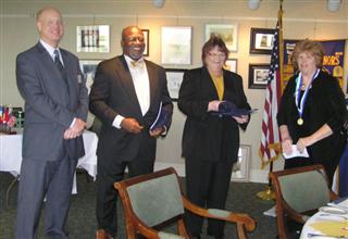 Rehoboth Beach Kiwanis Club inducted two new members, Joe R. Brake and Donna Paisley, at the recent changing of the Delmarva Division 11 Lt. Governor Banner. Lt. Gov. Allan Kujala and incoming Lt. Gov. Cummings had the pleasure of inducting these two new members. Both Joe and Donna have been familiar faces at local Kiwanis service events. Joe and his wife Regina provided much needed help during the parking for the July 4 Fireworks and he worked with the Scout troop. Donna knows well the Kiwanis family projects as she drove her daughter and friends to Key Club events, such as food collections or the Creche' assembly. When asked why he joined Joe said, he wanted to work directly with kids. Donna, who was driving her daughter to a Key Club planning session, asked how she could join Kiwanis after she researched Kiwanis and the Club on the web. She received her application and information booklet on the spot. Rehoboth welcomes both members to its growing Kiwanis Family.
