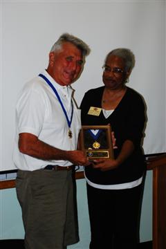 Local Kiwanis member, Norm Bogarde, was recently named a George F. Hixon Fellow, by the Mt. Airy Kiwanis Club. Bogarde receives his Hixon in recognition of 30+ years of significant contribution to the local Mt. Airy Kiwanis Club and community, during which time he has served in virtually every club office, including club President, chaired most of the club's committees and coordinated numerous fundraisers. He is the seventh member of the Mt. Airy club to receive the honor. Presenting the award to Bogarde is club president Stephanie Dalhquist.