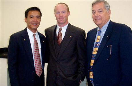 Past President Mike Cao (left) and Lt. Governor Gus Lemond (right) install Joshua Atchley as the Colonial Heights Kiwanis President for 2011-2012.