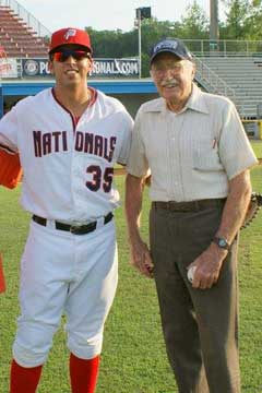 The Kiwanis Club of Manassas combined an evening of family fun with a way to honor their oldest living member. It's become a custom to use the fifth Thursday in a month as a fun and family event in lieu of our regular meeting. And in the summer that means the great American tradition of going to a baseball game.