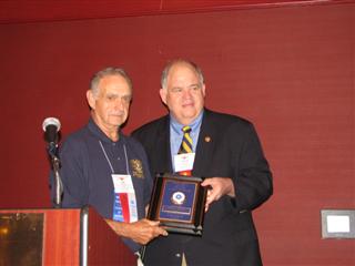 Governor Tom Ganse accepts the KIF award for the district's attainment of the goal. Neal Behan, KIF drive chair, is awarded a plaque for his continued many year leadership. Neal was unable to attend and his award was received by a fellow club member. Thank you.