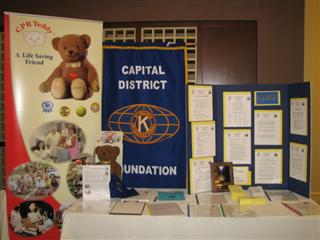 CPR Teddy highlights the District Foundation convention display along with descriptive literature and applications for joining the "Founder's Society" or becoming a CDKF Life Member. CPR Teddy was Governor Tom's project which netted $1,300 for the fund raiser to provide the bears to schools to teach adults how to do CPR for infants. Good job.