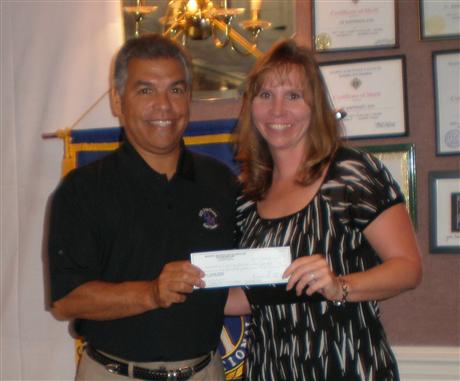 Marlayna Proctor from the Regional Institute for Children & Adolescents (JLG-RICA) presents Past Lt. Governor Eddie Koebke of the Wheaton-Silver Spring Kiwanis Club of Wheaton, Maryland a check for $5,012.09. This is the club's portion of the total proceeds from the Wheaton-Silver Spring/JPG-Rica annual golf tournament which is held every June. The proceeds from this tournament are divided between JLG-RICA and the Kiwanis Club. Club proceeds are allocated to different projects within their respective community while JLG-RICA uses the funds towards their student needs. Since this partnership began in 1999, the total money raised for both causes is just over $90,000! JLG-RICA, which opened in 1980, is a community based public treatment, education, and residential facility serving children and adolescents, grades 5th-12th, with severe emotional disturbances.